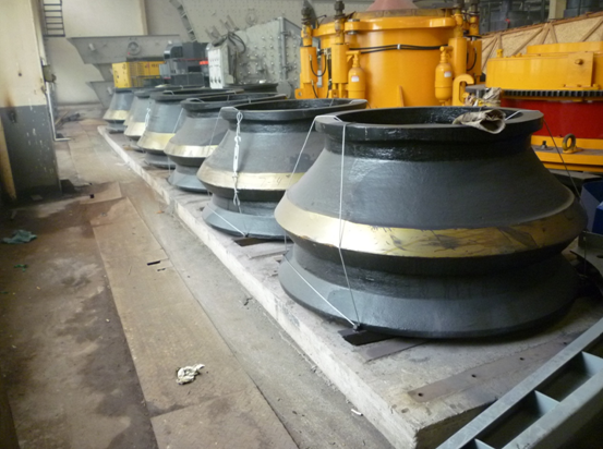 軋臼壁和破碎壁是在圓錐破中一起運轉工作對物料進行破碎的主要部件。圓錐破在運作的時候,破碎壁就會做軌跡運動,和軋臼壁的距離時而靠近時而遠離,達到擠壓破碎物料,部分物料會從開邊排料口排出。在圓錐破碎機中,破碎壁和軋臼壁是直接接觸物料的主要部件,使用一段時間后,不可避免的會產生磨損。那么,破碎壁和軋臼壁的使用壽命大約為多久呢?
