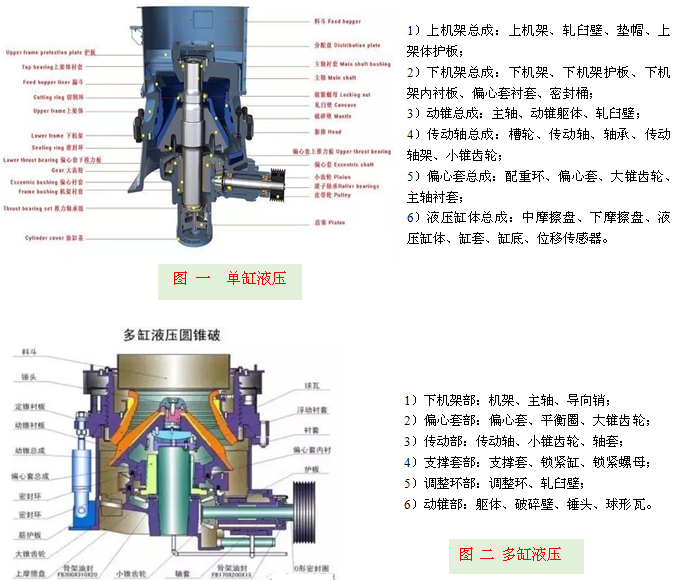 | 結構組成 | 上機架,下機架,動錐,傳動軸,偏心套,液壓缸體 | 下機架,偏心套,傳動,支撐套,調整環,動錐 | 附圖一、圖二 |